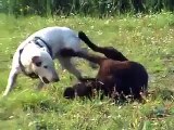 bull terrier croisé labrador(chiot) VS taureau!!!