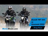 http://www.motorbeam.com puts the new Benelli TNT 300 against the KTM Duke 390 in a quarter-mile drag race to see if the value for money Duke 390 beats the twin-cylinder TNT 300.<br /><br />The KTM does produce more power and torque, it also weighs lesser but the Benelli revs higher and has one of the best sounding engines in the segment. Read MotorBeam's review of the KTM Duke 390 vs Benelli TNT 300 at http://www.motorbeam.com/2015/03/bikes/benelli-tnt-300/kawasaki-z250-vs-benelli-tnt-300-vs-ktm-duke-390-shootout/<br /><br />Subscribe to the channel:<br />http://www.youtube.com/subscription_center?add_user= motorbeamdotcom<br /><br />Follow Us On:<br /><br />https://www.facebook.com/MotorBeam<br />https://twitter.com/MotorBeam<br />http://instagram.com/MotorBeam<br />https://www.pinterest.com/motorbeam<br />https://plus.google.com/+motorbeam<br />http://www.motorbeam.com/