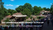 Crows Trained to Pick Up Garbage At France Theme Park