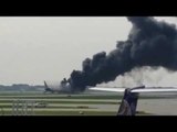 <br /> <p>A passenger filmed his own evacuation from the American Airlines flight that burst into flames at Chicago’s O’Hare Airport on Friday afternoon, October 28. According to the Federal Aviation Administration, the fire broke out after the plane blew a tire on the tarmac before take off. Several ambulances rushed to the scene but it was not clear if anyone had been injured in the incident.</p><p>This video by Hector Gustavo Cardenas shows passengers scrambling for the exit and leaving via an inflatable slide as smoke engulfed the body of the plane. Credit: Facebook/Hector Gustavo Cardenas</p><br />