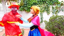Spiderman Fireman saves Frozen Anna's baby with Elsa vs Fire - Fun Superhero in Real life
