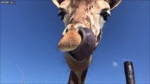 Des girafes pointent le bout de leur nez en plein restaurant! <br /> <br />Giraffes Stick Head Through Restaurant Window