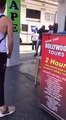 Il cherche les embrouilles à une employée de station service et fini avec sa moto en feu... Bien joué