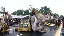 Eleven Ayutthaya elephants and 200 mahouts have taken part in a procession in Bangkok dedicated to King Bhumibol Adulyadej who died last month. Report by Chulanin. Like us on Facebook at http://www.facebook.com/itn and follow us on Twitter at http://twitter.com/itn
