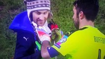 Crazy Gianluigi Buffon Autographs Fan's Shirt During A Match vs Liechtenstein!