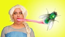 Frozen Elsa Becomes a Frog and Eats a Fly! Spiderman loses eyes w Joker ,Spidergirl - Superhero Fun