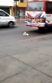 Ce canard essaye de se chamailler avec un chat qui se marre !