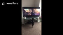 Amusing footage, filmed on November 10, of a chihuahua called Poppy joining in as the John Lewis advert plays on TV in her house in Croydon, UK
