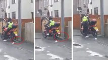 Il oublie de retirer le cadenas avant de démarrer sa moto