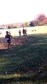 Alors qu'un coureur participe à une course de cross, un troupeau de chevreuil fait irruption et le percute violemment !