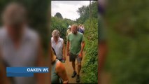 Campaigners walking through Oaken Wood to preserve the ancient woodland from further harm.