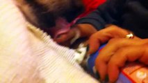 Un singe trop gourmand mange de la chantilly directement à la bombe