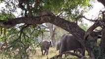 A BIG SNAKE, CHEETAHS run from LIONESS with CUBS, ELEPHANTS walk under LEOPARD.