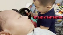 'Boy Makes a Hilarious Gag Face When he Sees his Baby Brother'