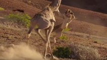 L'impressionnante réaction d'une girafe attaquée par une lionne en Namibie