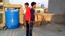Young boys and little kids, doing stunts during Holi