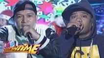 Denjie "Deng" Dolloso and John Michael "Kritiko" Edixon compete in It's Showtime Christmas Rapper.