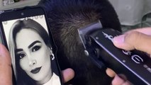 Hair stylist creates a hyper-realistic portrait on the back of a client's head