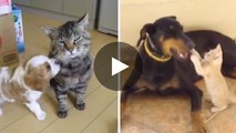 Diese Hunde und Katze treffen zum ersten Mal aufeinander - nicht immer ist es die große Liebe...