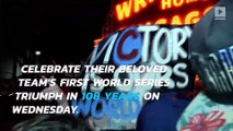 Occurred on November 4, 2016 / Chicago, Illinois, USA<br /><br />Info: A Chicago Cub's fan falls into the crowd at the World Series Parade in downtown Chicago.