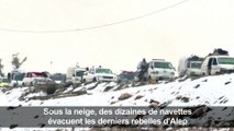 Une file de bus, qui attendent les derniers occupants d’Alep-est. Et des ambulances aussi, pour prendre en charge les blessés. 4000 rebelles et leurs familles doivent être évacués ces prochaines heures. <br /><br /> Alep : nouvelle tentative d'évacuation des civils et rebelles https://t.co/zYrRtDOKir pic.twitter.com/fjlJm26Vav— L'Obs (@lobs) 15 décembre 2016<br /> <br /><br /> Les 20 bus et les 10 ambulances emprunteront un corridor spécial en direction d’Idleb, dans le nord-ouest de la Syrie, sous la protection de l’armée russe. La Russie va utiliser des drones pour surveiller l‘évacuation. <br /><br /> Alep : nouvelle tentative d'évacuation des civils et rebelles https://t.co/zYrRtDOKir pic.twitter.com/fjlJm26Vav— L'Obs (@lobs) 15 décembre 2016<br /> <br /><br /> Il semble que cette fois le départ soit bien réel,après l‘échec mercredi d’un premier accord d‘évacuation.<br /><br /> L’inquiétude demeure pourtant sur le sort final des évacués, et sur la sécurité entourant cette opération. L’agence de presse turque, une télévision syrienne dans l’opposition, et les Casques blancs affirment que des combattants pro-régime, des milices chiites, ont tiré sur un convoi transportant des malades, tuant au moins quatre civils et faisant quatre blessés.<br />