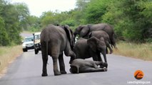 Elefante desmaia no meio da estrada. A reação da sua família vai deixar-te sem palavras!!!
