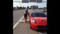En panne avec sa Ferrari, il remet de l'essence au beau milieu de l'autoroute
