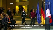 Le président français François Hollande a affirmé vendredi 16 décembre 2016 à Bruxelles qu'il n'imaginait pas que la Russie puisse s'opposer à la "résolution humanitaire" que la France veut faire adopter par le Conseil de sécurité de l'Onu. Il a aussi déclaré que des sanctions de l'UE contre la Syrie étaient une des options possibles. IMAGES ET SONORES.