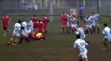 Lors d’un match de Serie A en Italie, un rugbyman a plaqué une femme qui arbitrait la rencontre et l’a mise violemment au sol. Un geste inexplicable quand on visionne les images, on voit clairement que l’Argentin Bruno Doglioli fait ce geste volontairement. L’arbitre souffre de blessures à la nuque. Le joueur a été suspendu par son club et risque jusqu’à 3 ans de suspension.