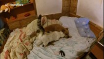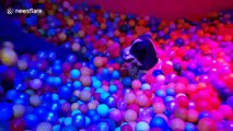 Adorable footage, filmed in Minneapolis, Minnesota, USA, of a dog and cat fighting over who owns the ball pit in their owner's lounge.