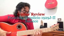 21 features on AG Simplicio https://youtu.be/LaZ4mcFKtVQ?t=2m <br /> <br />Three-dimensional sound https://youtu.be/yp15_iiIK5U?t=18s <br /> <br />http://andalusianguitars.com/characteristicsAG.html <br /> <br /> <br /> <br /> <br />https://www.liveauctioneers.com/item/24672499_1927-francisco-simplicio-presentation-classical <br /> <br />Guitar made around 1929 by Francisco Simplicio <br /> http://www.themomi.org/museum/mfa/popular_guitars/1929-30_F_Simplicio.html <br />Simplicio noticed a disadvantage of the traditional sound hole position in the weakening of the guitar top in a crucial area and also in a reduction of the sound emitting surface of the top (Huber, J.: The Development of the Modern Guitar, Westport, 1994, p.27). The increased sound emitting surface should also improve the sound emitting in the bass range (Stark, D.: Diplomarbeit – Entwurf und Bau einer Konzertgitarre mit doppelter Decke in Sandwichbauweise, Weimar, 2006, p.6) <br /> <br />Impact on the sound: <br /> <br />Omitting the sound hole or positioning it on both sides of the fingerboard leads to an enlarged vibrating surface of the top. Cue to the ratio between top length or width and top thickness, it is possible to: <br /> <br />– attain the same degree of flexibility of the top as in a traditional guitar, but obtaining a higher mass of the top (this leads to a better sustain without the loss of attack and responsiveness) <br /> <br />– attain a more flexible top than on a traditional guitar, but maintaining the same mass of the top (this leads to increased loudness and responsiveness without the loss of sustain). <br /> <br />In addition, the Helmholtz frequency http://polettipiano.com/Pages/airresengpaul.html <br />can be lowered significantly, which in turn has an impact on the tonal character of the instrument. <br /> <br />New Simplicio 1929c Tulipwood with Zero fret + Wittner Pegs https://youtu.be/3U9keF7lFH4
