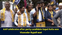 AAP celebrates after party candidate Gopal Italia won Visavadar Bypoll seat