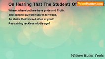 William Butler Yeats - On Hearing That The Students Of Our New University Have Joined The Agitation Against Immoral Literat