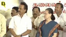 Opposition including DMK, CPM, Congress and RJD protest in front of Gandhi statue in Parli
