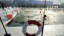 Chine : des nageurs bravent le froid lors du festival de glace