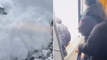 Zermatt: la valanga è spettacolare, l'enorme massa di neve arriva fino al treno. Paura a bordo ma nessun ferito