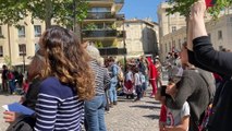 Le ballet de l'Opera Grand Avignon, donnait une representation peu commune ce 21 mai sur la place de l'Horloge. En effet, les danseurs ont participe a un cours de danse devant l'hotel de ville...