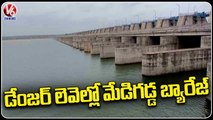Danger Level In Medigadda Barrage Due To Not Lifting Water _ V6 News (1)