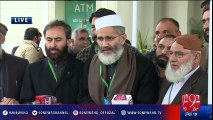 Siraj-ul-haq talks to media over Panama case hearing