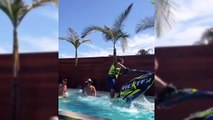 Une fille fait du jet ski dans sa piscine. Pourquoi aller à la mer quand on peut rester chez soi à profiter de sa piscine ?