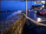 Le vent souffle sur la Manche, jeudi 12 janvier 2017. Des morceaux de toiture menacent de tomber rue Albert-Mahieu.