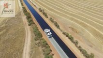 Un drone filme un travail d'équipe particulièrement efficace pour bitumer une route près de Moora, un petit village qui se situe à 177 km au nord de Perth, en Australie. Dans un premier temps, un camion-citerne dépose du goudron sur toute la largeur de la route en un seul passage, puis trois camions-bennes déversent du gravier en effectuant une longue marche arrière, suivis de près par des rouleaux compresseurs qui clôturent le cortège. Au total, 4,9 kilomètres de route ont été bitumés en deux jours.