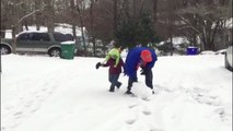 Gran idea la de este padre al provocar una pequeña avalancha de nieve golpeando un árbol bajo el cual se encontraban sus hijos.