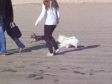 Cachou, bichon maltais, à la plage de la Baule