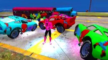 MCQUEEN MONSTER TRUCK Destroy COLORS CARS + HULK SMASH PARTY w/ Spiderman & Children Nursery Rhymes