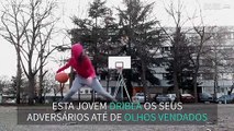 Driblar de olhos vendados é coisa fácil para esta jovem