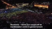 Des dizaines de milliers de manifestants ont formé un drapeau roumain géant illuminé par leurs téléphones portables lors d'un rassemblement à Bucarest pour réclamer la démission du gouvernement qu'ils accusent de miner la lutte contre la corruption. (AFP)