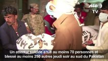 <br /> Un attentat-suicide revendiqué par le groupe Etat Islamique a fait au moins 70 morts et 250 blessés jeudi soir dans un sanctuaire soufi du sud du Pakistan, choquant le pays après une série d'autres attaques en début de semaine. Durée : 01:12<br />