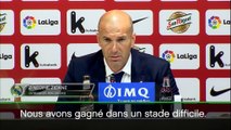 Le Real Madrid a battu ce samedi l’Espanyol Barcelone (2-0), lors de la 23e journée de la Liga. Les Merengues ont battu le record du club en inscrivant au moins un but pour le 42e match consécutif. Pour Zinedine Zidane, cette performance s’appuie sur la patience de ses hommes.