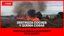 Destroza coches y quema cosas mientras pasea a sus perros en Alicante